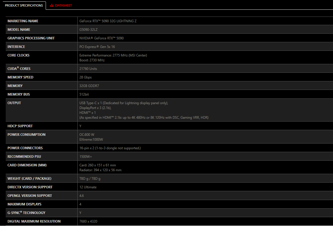 MSI GeForce RTX 5090 32G LIGHTNING Z (3 YEAR WARRANTY BY CORBELL TECHNOLOGY PTE LTD)