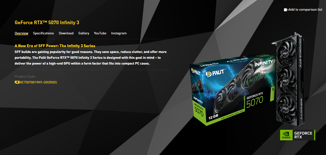 PALIT RTX 5070 INFINITY 3 12GB  GDDR7 ( 3 YEARS WARRANTY BY TECH DYNAMIC PTE LTD)