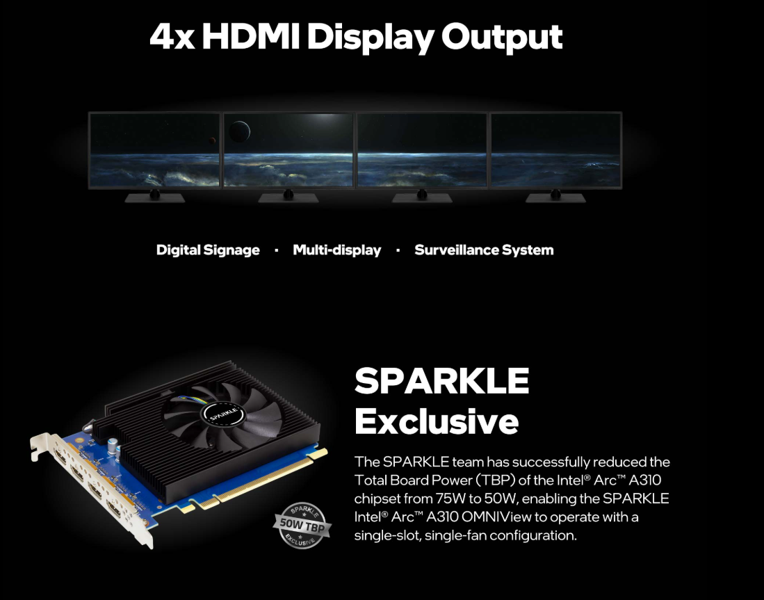 SPARKLE Intel Arc A310 OMNI View 4GB GDDR6 (3 YEAR WARRANTY BY BAN LEONG TECHNOLOGY PTE LTD)
