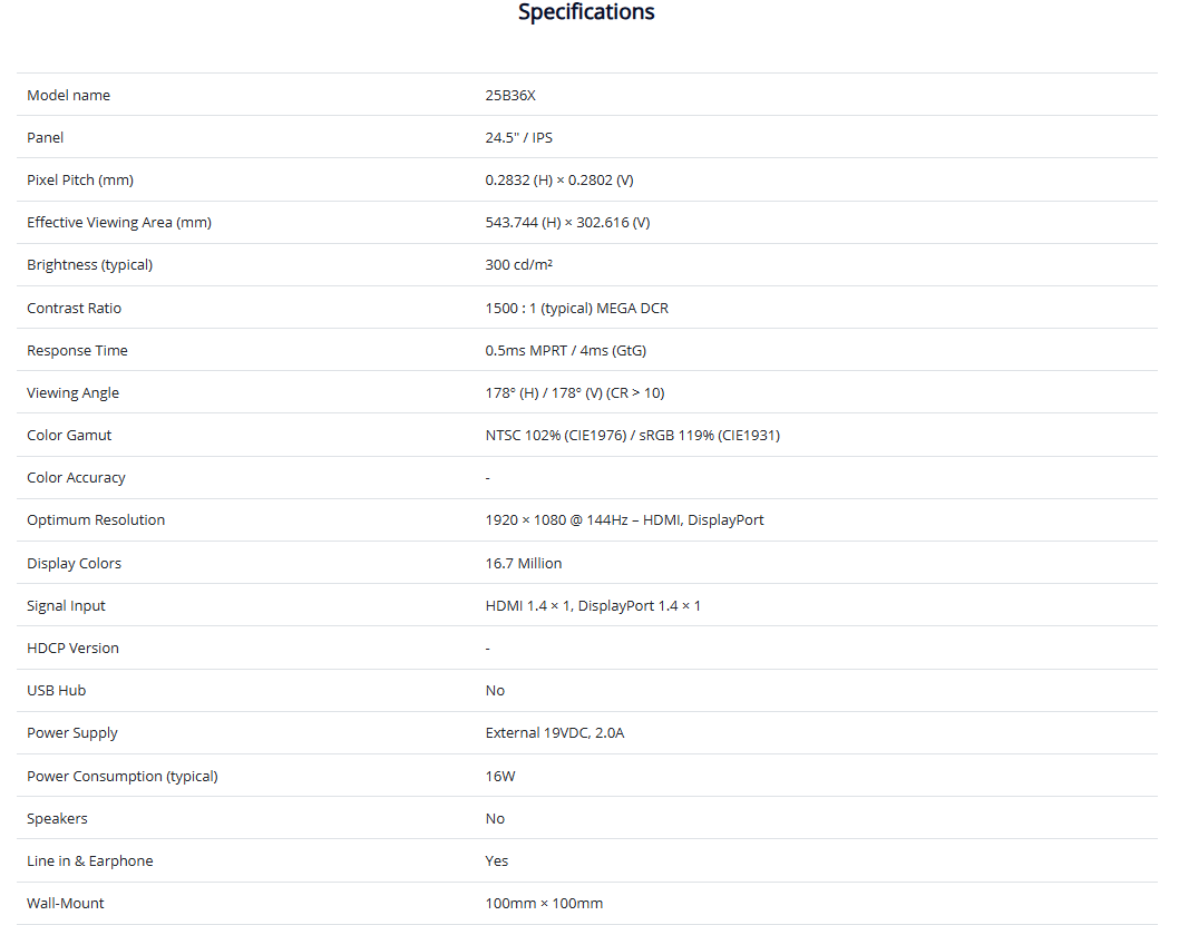 AOC 25B36X 24.5" IPS 144Hz MONITOR (3 YEAR WARRANTY BY CORBELL TECHNOLOGIES PTE LTD)