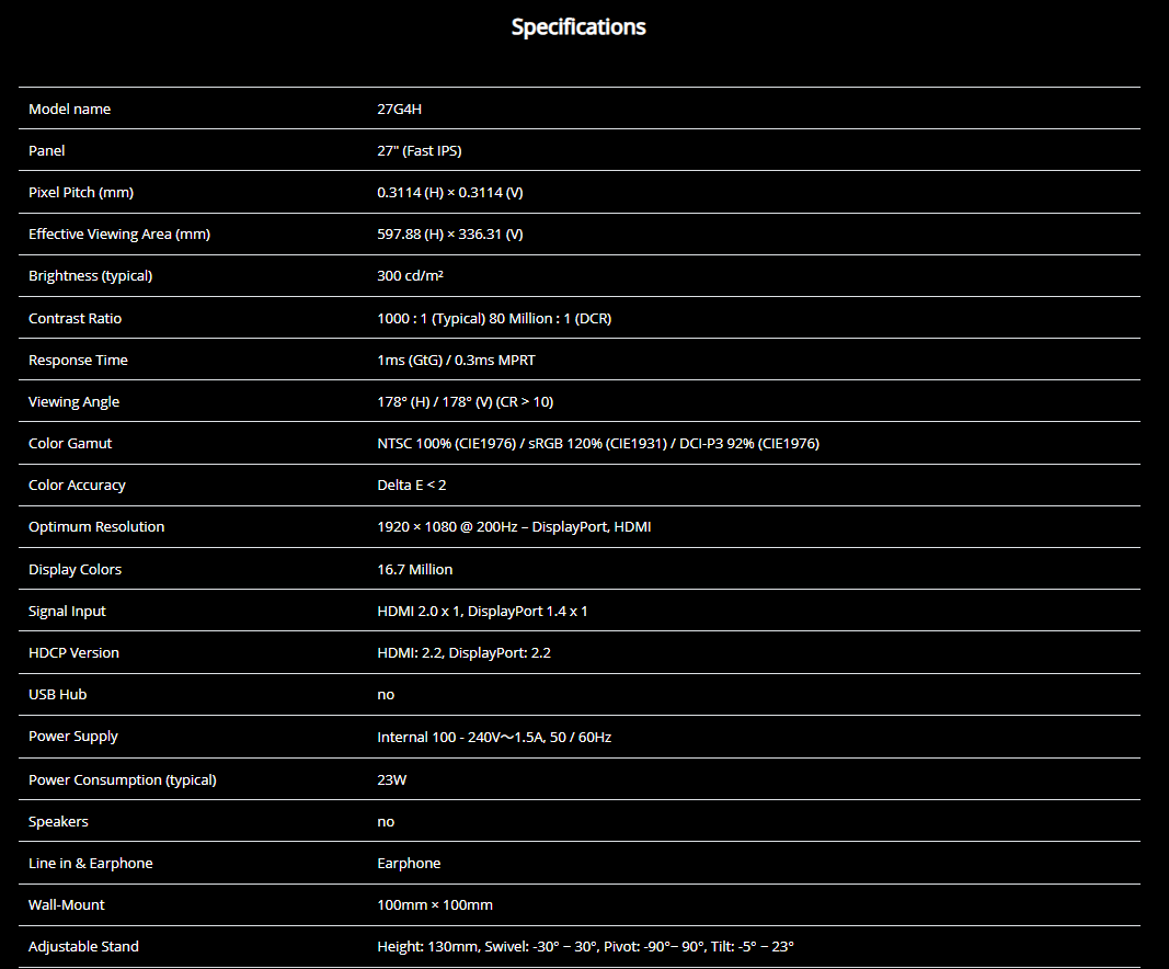 AOC 27G4H 27" 200Hz GAMING MONITOR (3 YEARS WARRANTY BY CORBELL TECHNOLOGIES PTE LTD)
