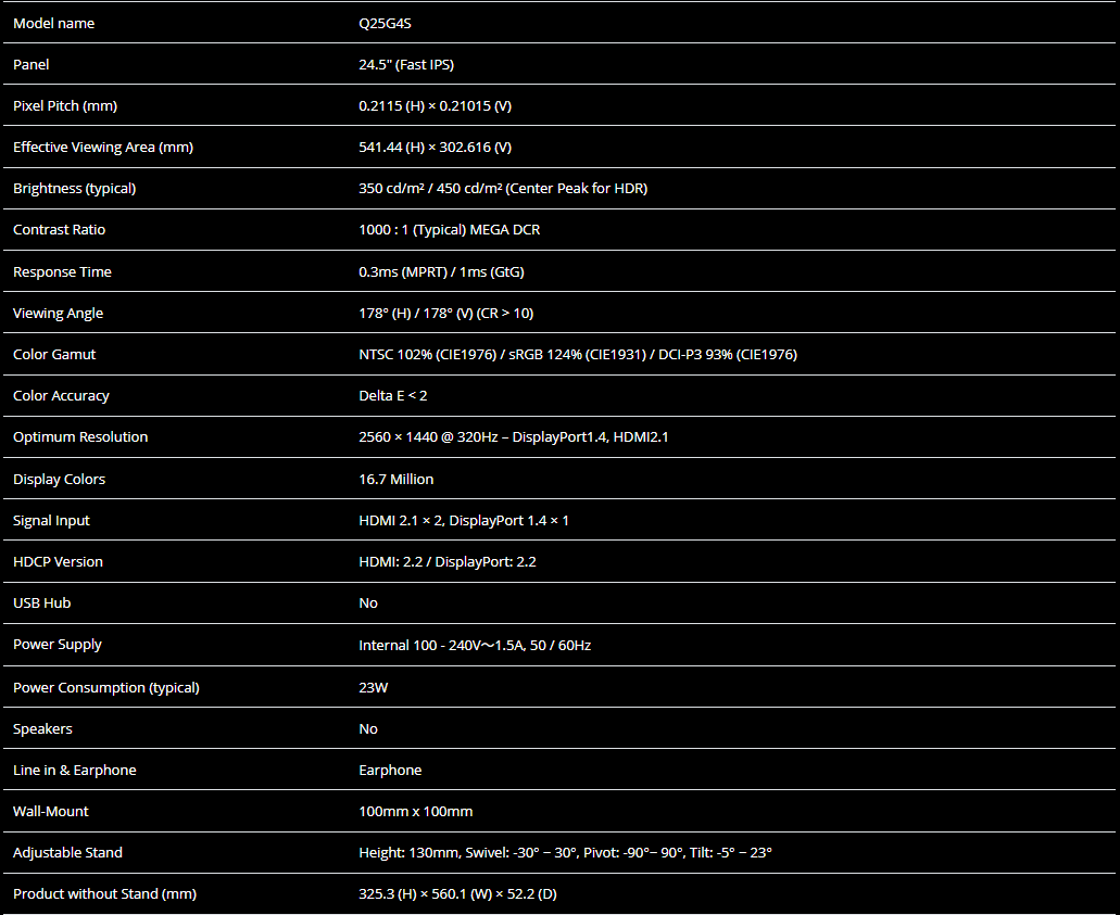 AOC Q25G4S 24.5" 320Hz QHD GAMING MONITOR (3 YEARS WARRANTY BY CORBELL TECHNOLOGIES PTE LTD)