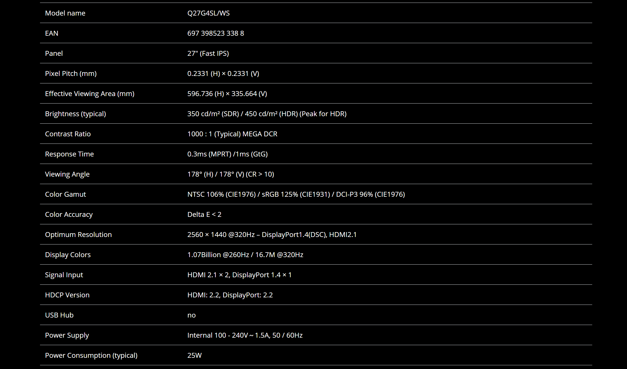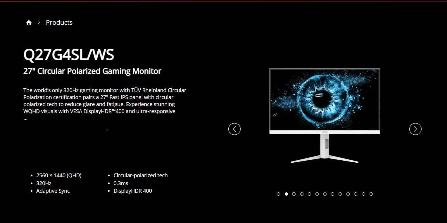 AOC Q27G4SL/WS 27" QHD 320Hz 2560 × 1440  0.3ms Gaming Monitor (3 YEARS WARRANTY BY CORBELL TECHNOLOGY PTE LTD)