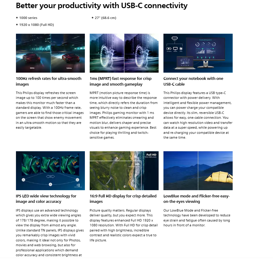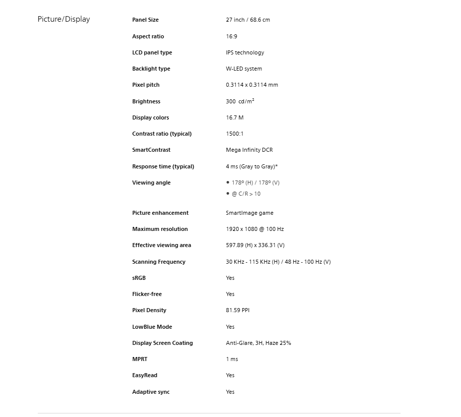PHILIPS FULL HD LCD DISPLAY 27E1N1300AE 27 INCH 1920X1080 (3 YEARS WARRANTY BY CORBELL TECHNOLOGIES PTE LTD)