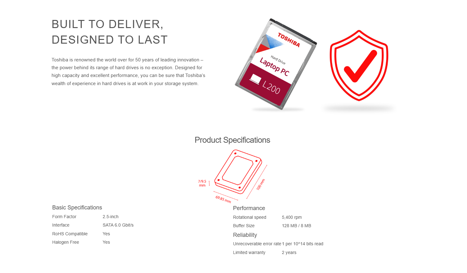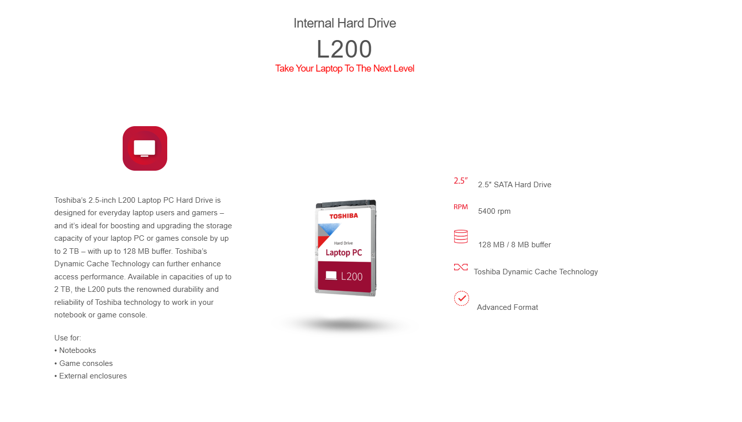 TOSHIBA L200 PERFORMANCE DESKTOP INTERNAL 2.5 " HDD 1TB / 2TB 5400 rpm (3 YEARS WARRANTY)