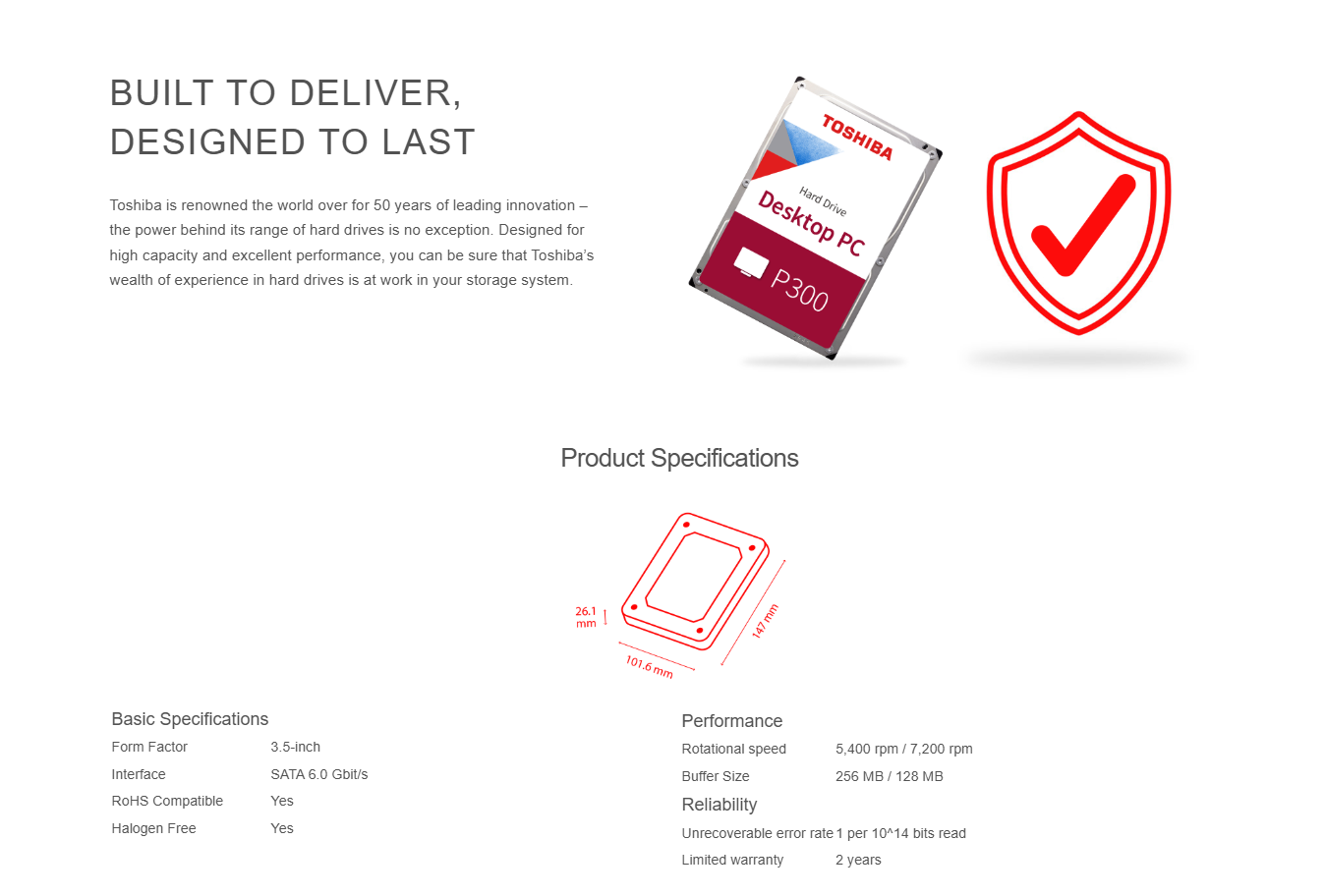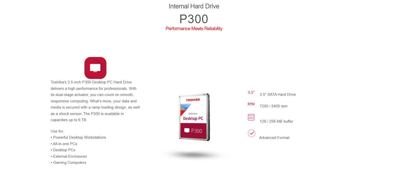 TOSHIBA P300 DESKTOP INTERNAL HDD 4TB / 6TB 5400 rpm (2 YEARS WARRANTY)