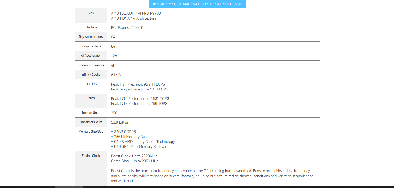 AMD RADEON AI PRO R9700 32GB VRAM 4096 STREAM PROCESSORS SERVER GRAPHICS CARD (3 YEARS WARRANTY)