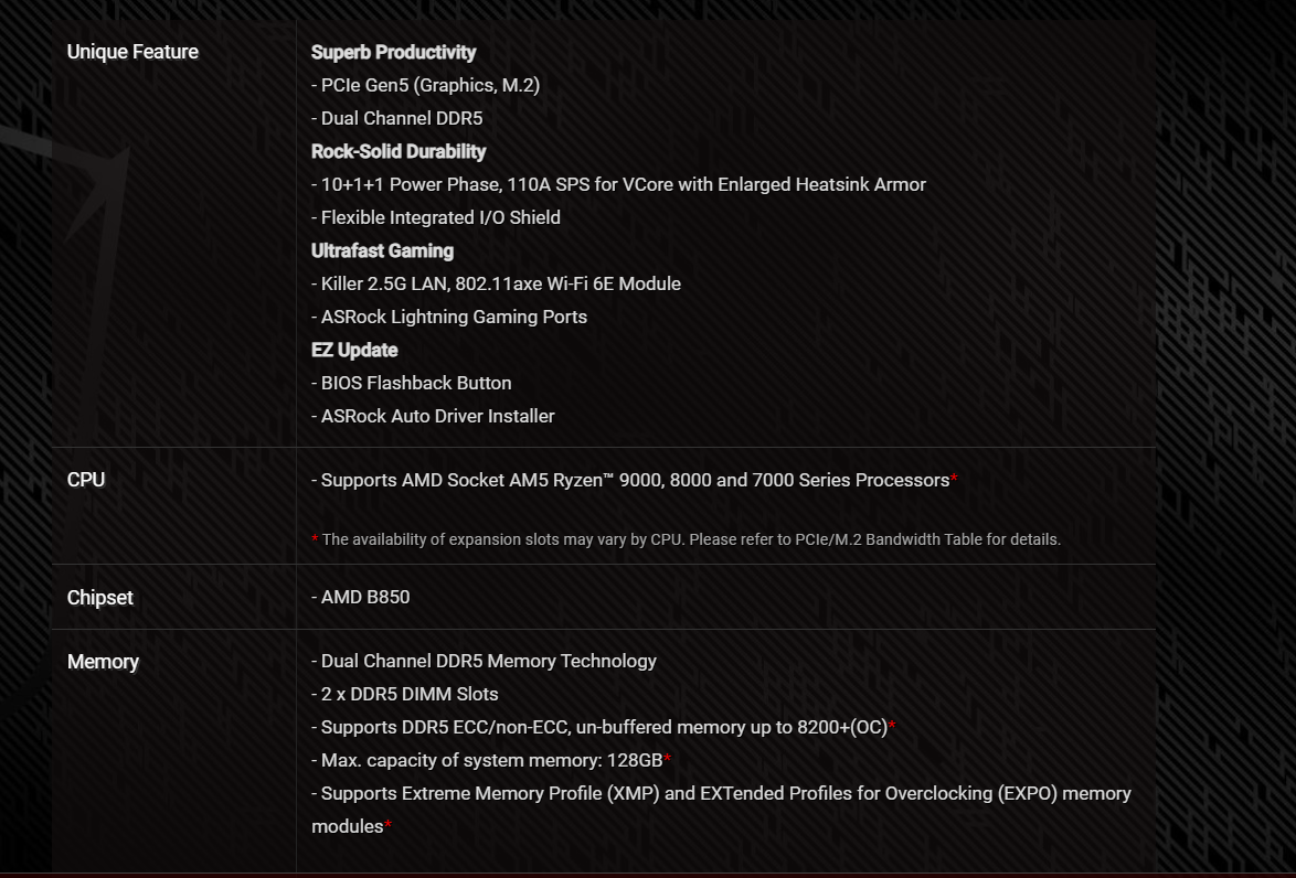 ASROCK B850I LIGHTNING WIFI AMD B850 DDR5 MOTHERBOARD (3 YEARS WARRANTY BY TECH DYNAMIC PTE LTD)