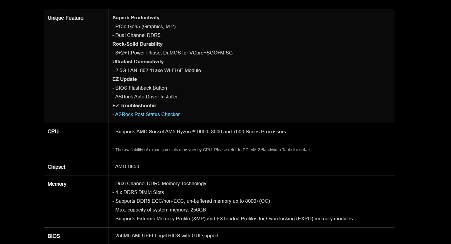 ASROCK B850M PRO-A WIFI PCIE GEN 5 M.2 AMD B850 CHIPSET MOTHERBOARD (3 YEARS WARRANTY BY TECH DYNAMIC PTE LTD)