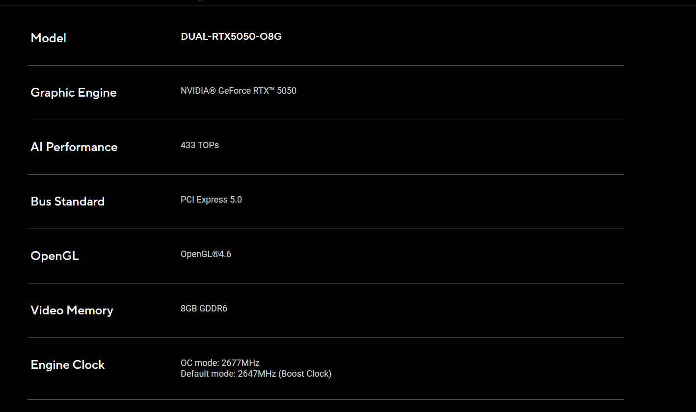 ASUS DUAL GeForce RTX 5050 RTX5050 8GB GDDR6 OC EDITION (3 YEARS WARRANTY BY BAN LEONG TECHNOLOGIES PTE LTD)