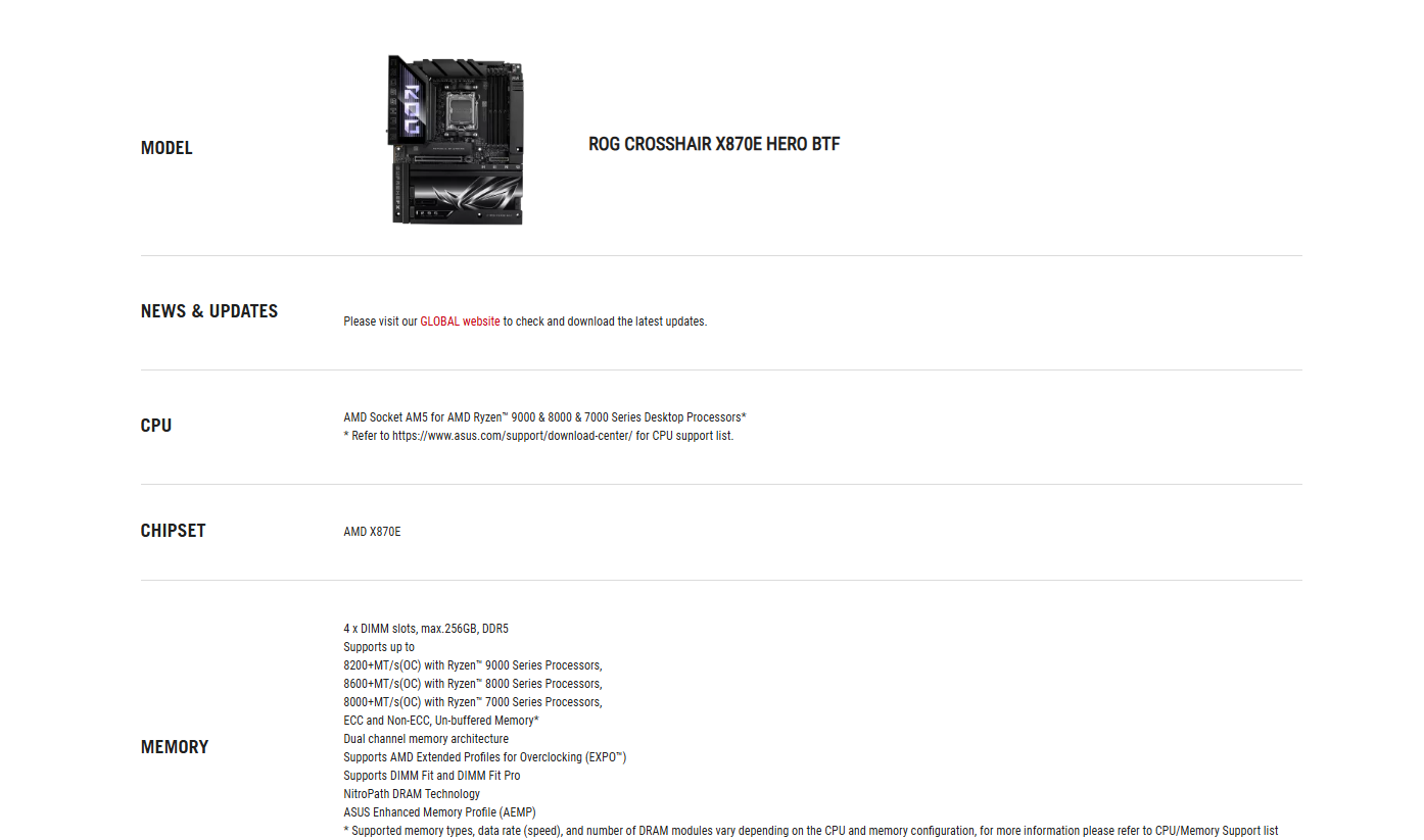 ASUS ROG CROSSHAIR X870E HERO BTF AMD X870E CHIPSET MOTHERBOARD (3 YEARS WARRANTY BY BAN LEONG TECHNOLOGIES PTE LTD)