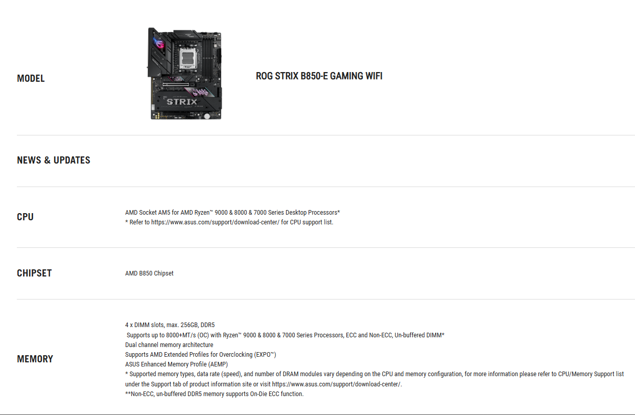 ASUS ROG STRIX B850-E GAMING WIFI AMD AM5 GAMING MOTHERBOARD (3 YEARS WARRANTY BY BAN LEONG TECHNOLOGIES PTE LTD)