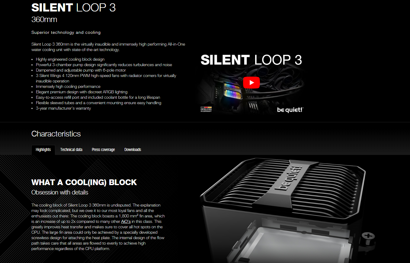 BE QUIET! SILENT LOOP 3 360MM AIO COOLER W Silent Wings 4 120mm (3 YEARS WARRANTY BY TECH DYNAMIC PTE LTD)