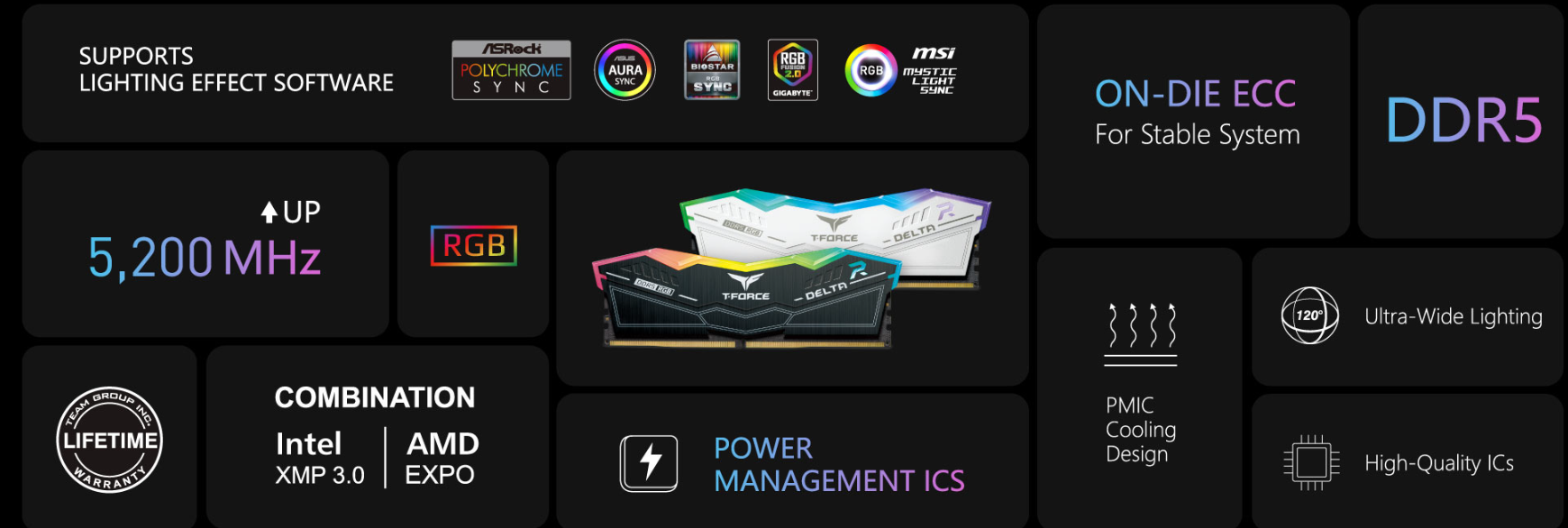 TeamGroup TEAM DELTA ARGB RAM 2x16GB CL28 / 2x32GB CL38 6000 DDR5 BLACK/WHITE (LIMITED LIFETIME WARRANTY BY AVERTEK ENTERPRISES PTE LTD)