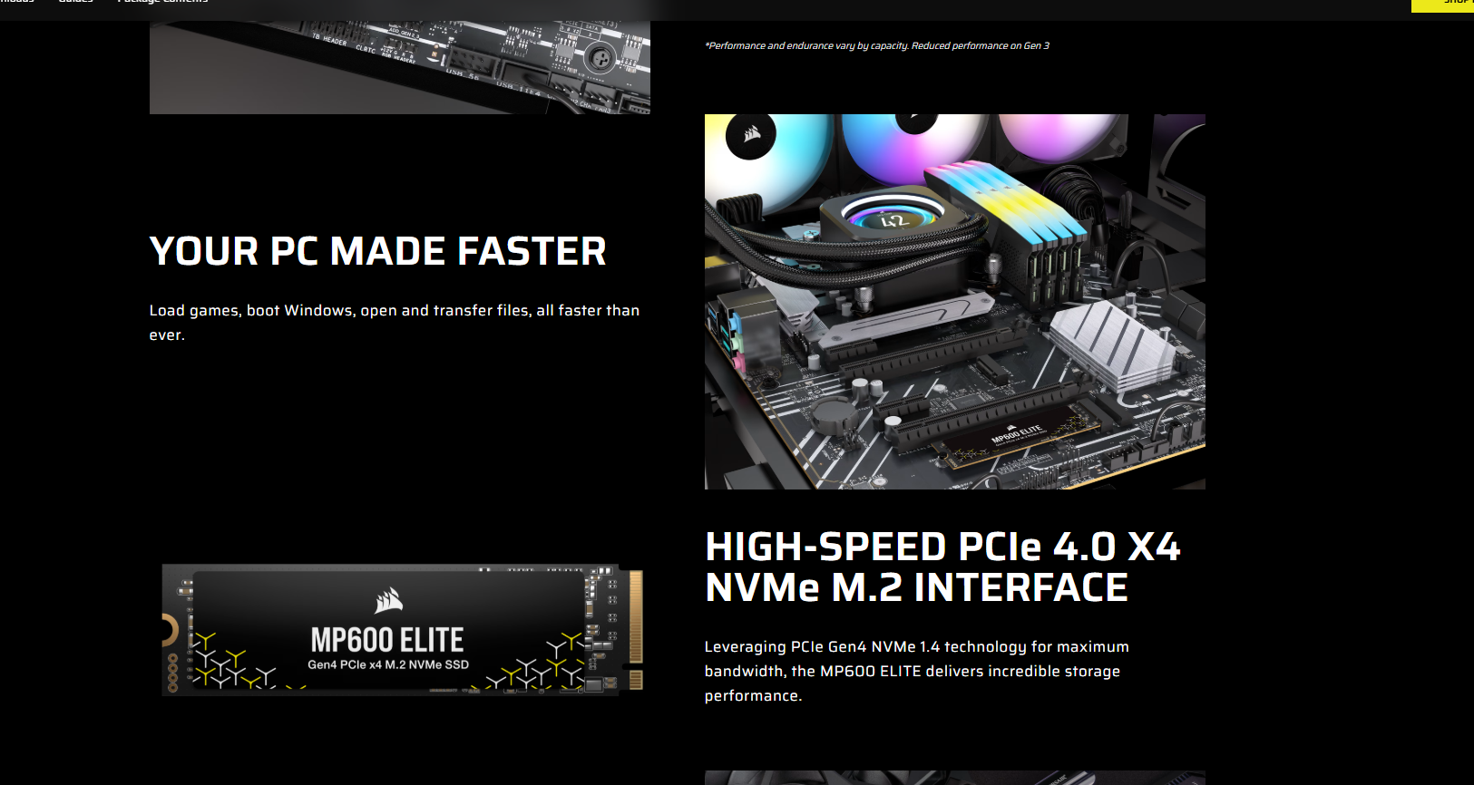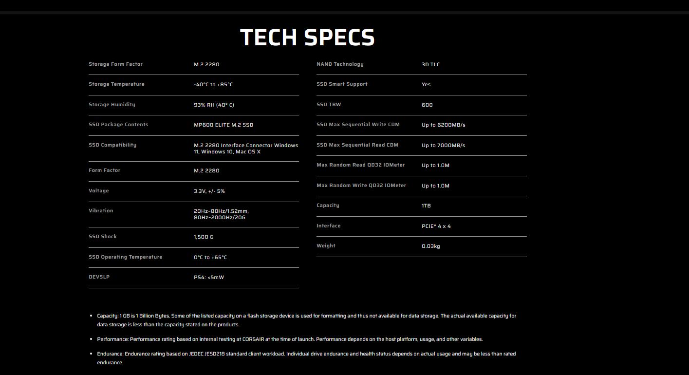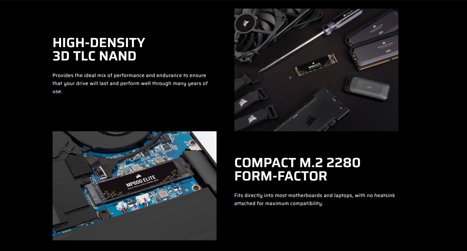 CORSAIR MP600 ELITE 1TB PCIe Gen4 x4 NVMe M.2 SSD (2 YEARS WARRANTY BY CONVERGENT SYSTEMS PTE LTD)