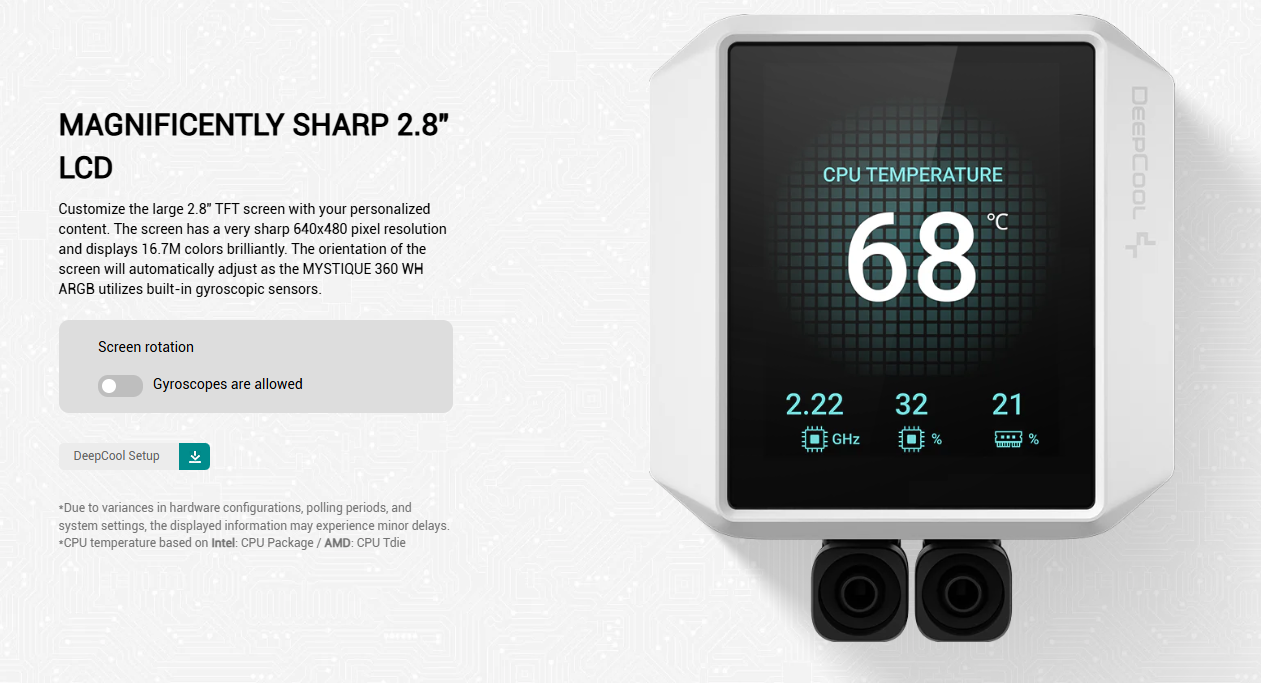 DEEPCOOL ARGB 360 MYSTIQUE LCD AIO WHITE/BLACK (5 YEARS WARRANTY BY TECH DYNAMIC PTE LTD)