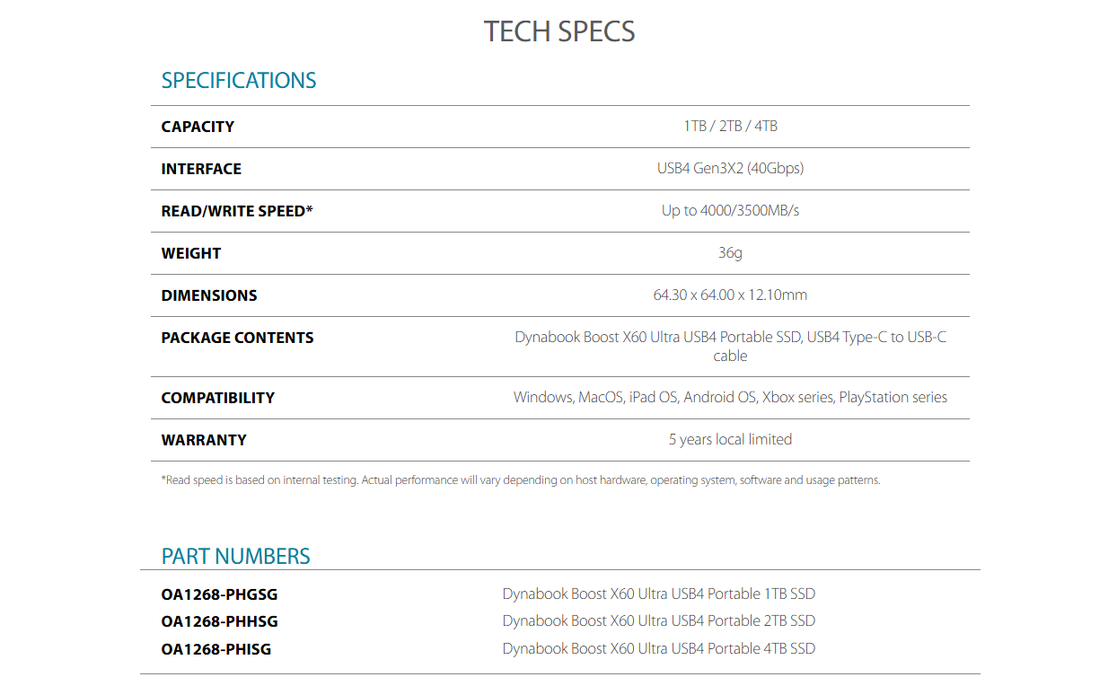 DYNABOOK BOOST X60 ULTRA USB4 PORTABLE SSD 1TB/2TB/4TB (5 YEARS WARRANTY)