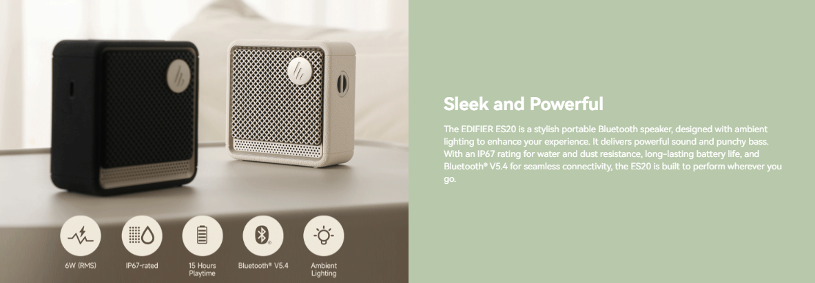 EDIFIER ES20 PORTABLE MINI BLUETOOTH SPEAKER BLACK/WHITE (1 YEAR WARRANTY BY BAN LEONG TECHNOLOGIES PTE LTD)