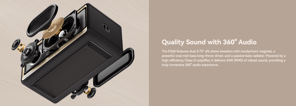 EDIFIER ES60 BLUETOOTH SPEAKER 34W BLACK/WHITE (1 YEAR WARRANTY BY BAN LEONG TECHNOLOGIES PTE LTD)