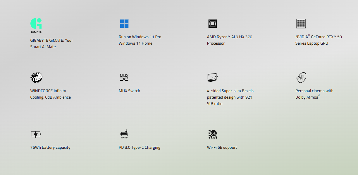 GIGABYTE AERO X16 EG61H 1TH COPILOT+ RTX 5050 RYZEN 7 AI INSIDE (2 YEARS WARRANTY BY TECH DYNAMIC PTE LTD)