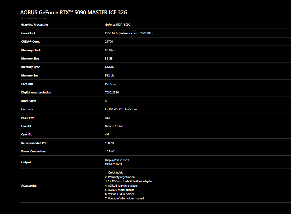 GIGABYTE AORUS MASTER ICE GeForce RTX™ 5090 32GB GRAPHICS CARD (3 YEARS WARRANTY BY CDL TRADING PTE LTD)