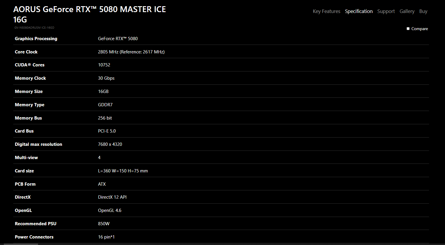 GIGABYTE AORUS RTX 5080 RTX5080 MASTER ICE 16GB GDDR7 GRAPHICS CARD (3 YEARS WARRANTY BY CDL TRADING PTE LTD)