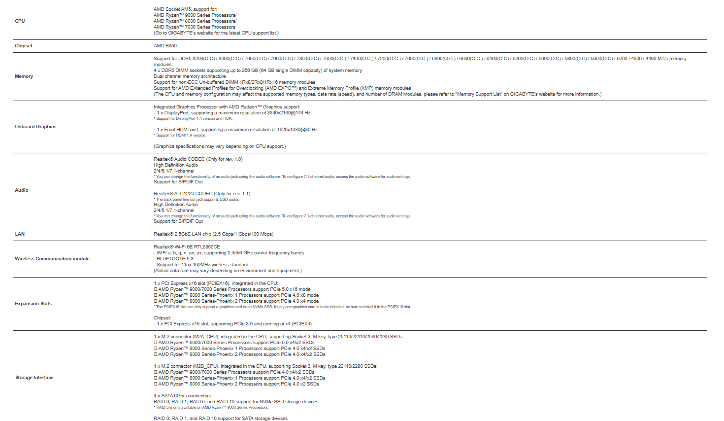 GIGABYTE B850M AORUS ELITE WIFI6E ICE (rev. 1.x) DDR5 MOTHERBOARD (3 YEARS WARRANTY BY CDL TRADING PTE LTD)