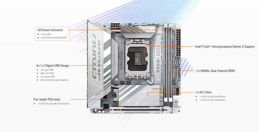 GIGABYTE B860I AORUS PRO ICE DDR5 DUAL CHANNEL MEMORY MOTHERBOARD  (3 YEARS WARRANTY BY CDL TRADING PTE LTD)