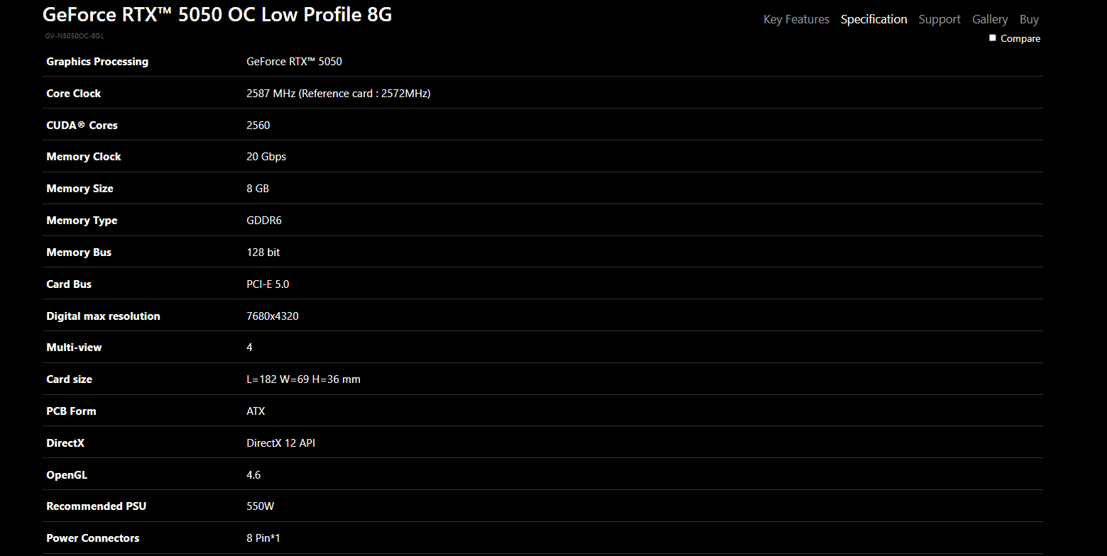 GIGABYTE GEFORCE RTX™ 5050 OC LOW PROFILE 8GB GDDR6 128BIT 3 FAN COOLING (3 YEARS WARRANTY BY CDL TRADING PTE LTD)