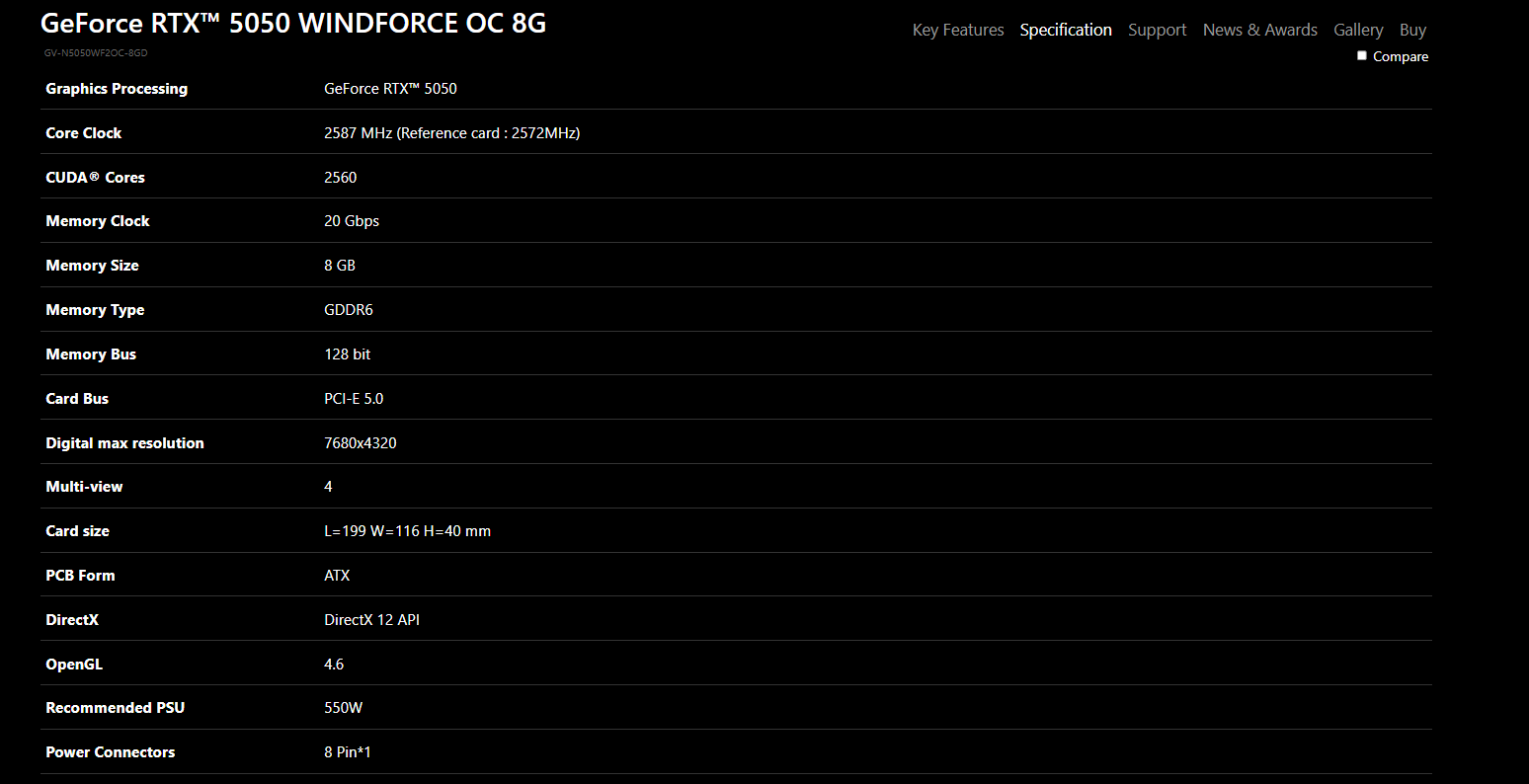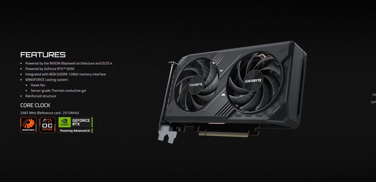 GIGABYTE GEFORCE RTX 5050 RTX5050 WINDFORCE OC 8GB GDDR6 128BIT (3 YEARS WARRANTY BY CDL TRADING PTE LTD)