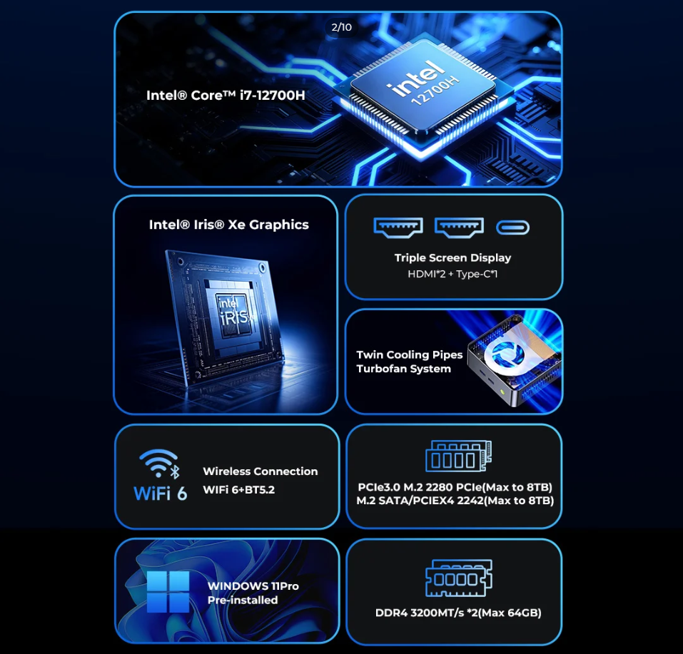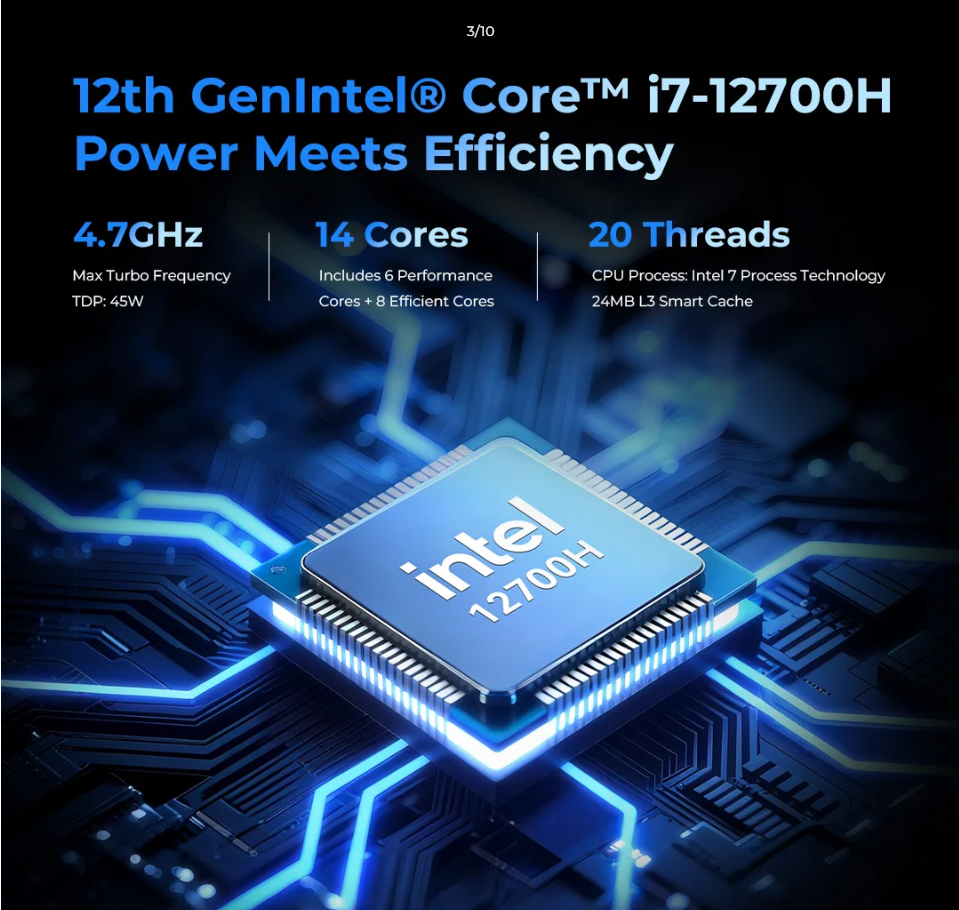 GMKtec NucBox M3 Ultra Intel Core i7-12700H 32GB DDR4/1TB SSD Mini PC WINDOWS 11 PRO (3 YEARS WARRANTY BY CORBELL)