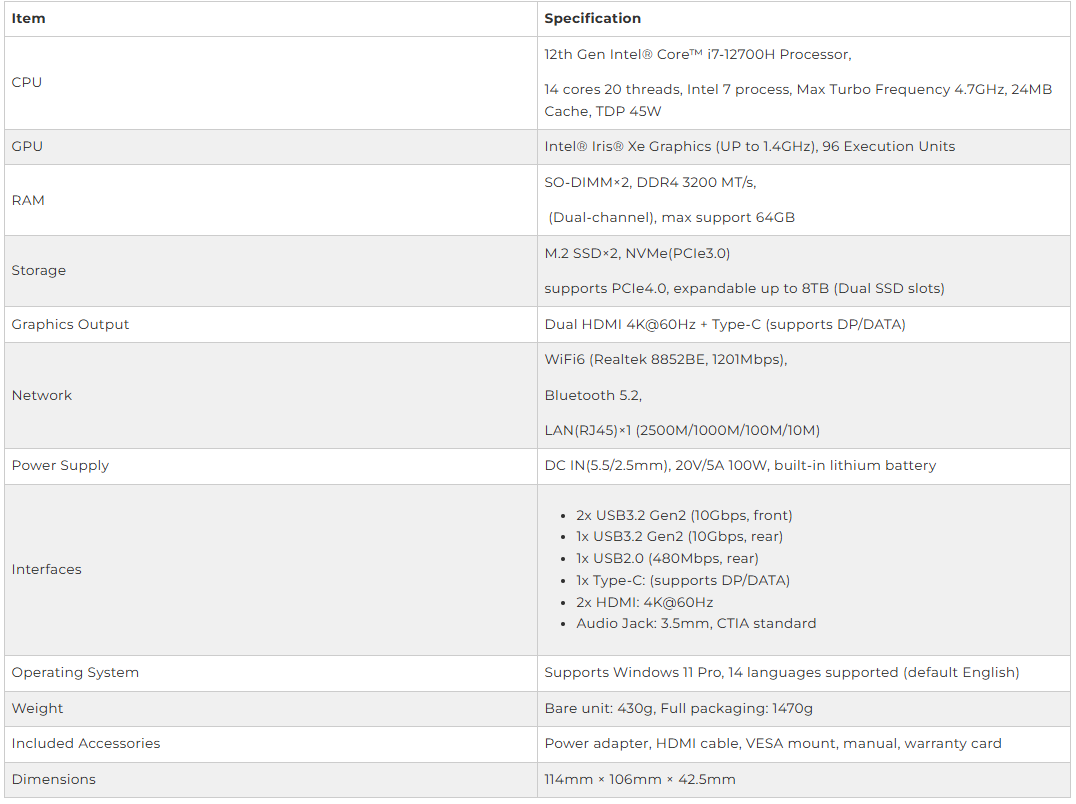 GMKtec NucBox M3 Ultra Intel Core i7-12700H 32GB DDR4/1TB SSD Mini PC WINDOWS 11 PRO  (3 YEARS WARRANTY BY CORBELL)