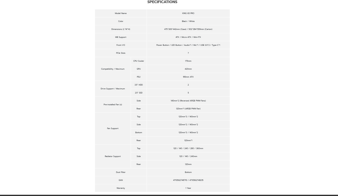 MONTECH KING 65 PRO BLACK/WHITE ATX/MICROATX/MINIITX CASE (1 YEAR WARRANTY BY TECH DYNAMIC PTE LTD)