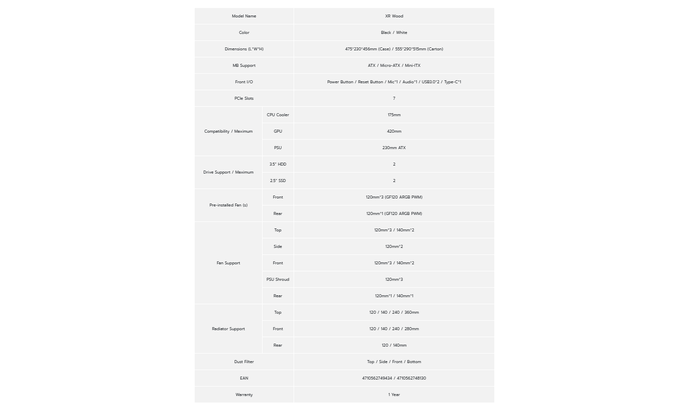MONTECH XR WOOD ATX CASE BLACK/WHITE (1 YEAR WARRANTY BY TECH DYNAMIC PTE LTD)