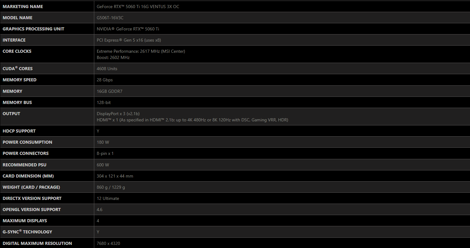 MSI GeForce RTX™ 5060 Ti 5060Ti 16G VENTUS 3X OC GRAPHICS CARD (3 YEARS WARRANTY BY CORBELL TECHNOLOGY PTE LTD)