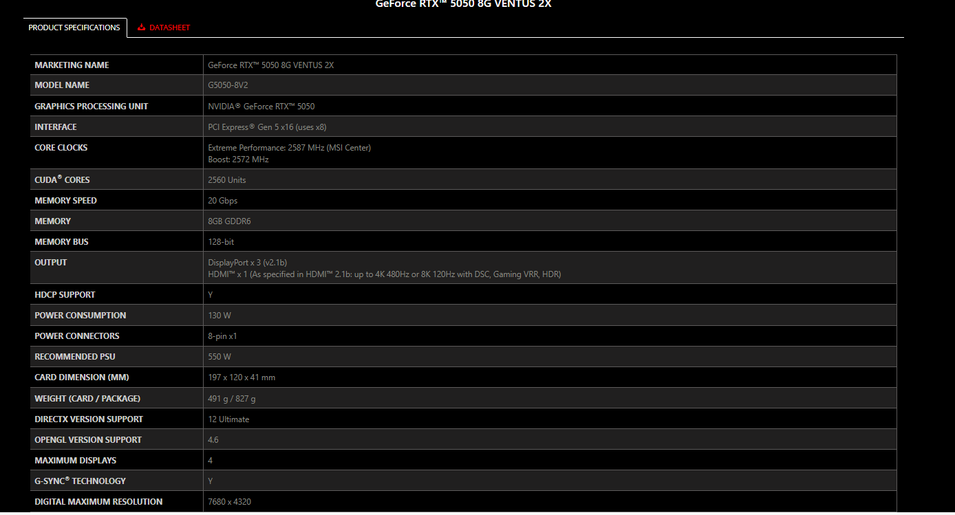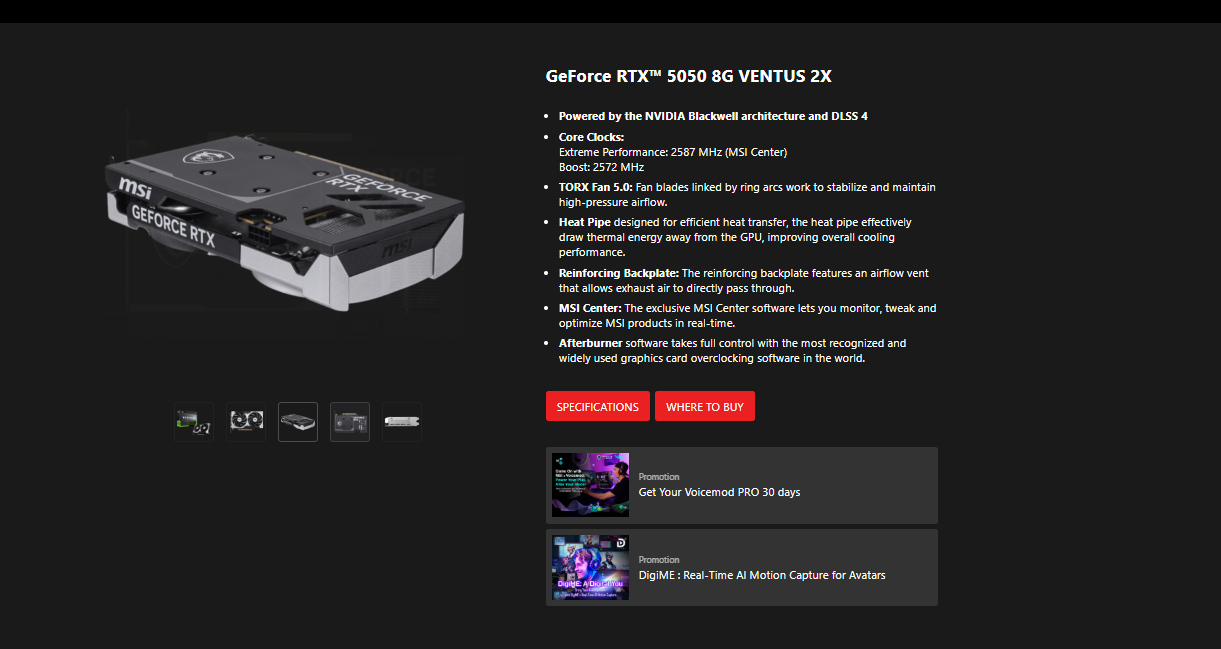 MSI GeForce RTX 5050 RTX5050 8GB VENTUS 2X GDDR6 GRAPHICS CARD ( 3 YEARS WARRANTY BY CORBELL TECHNOLOGIES PTE LTD)