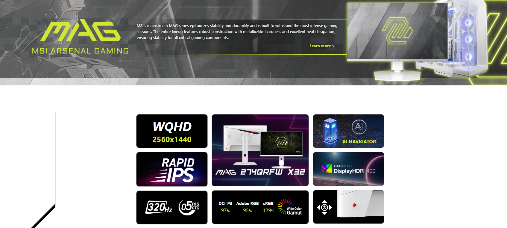 MSI MAG 274QRFW X32 320 HZ RAPID IPS 2560 x 1440 (WQHD) GAMING MONITOR (3 YEARS WARRANTY BY CORBELL TECHNOLOGIES PTE LTD