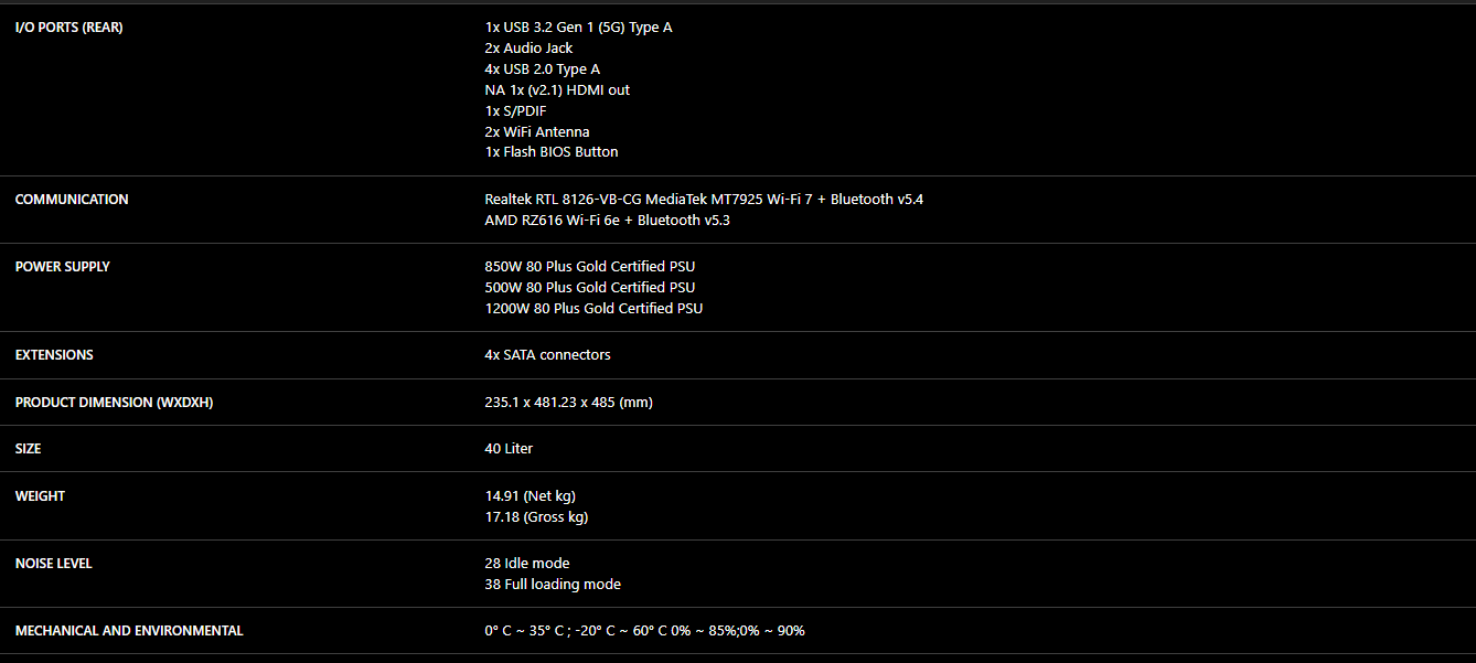 Storage : 1TB M.2 PCIe Gen4x4 SSD