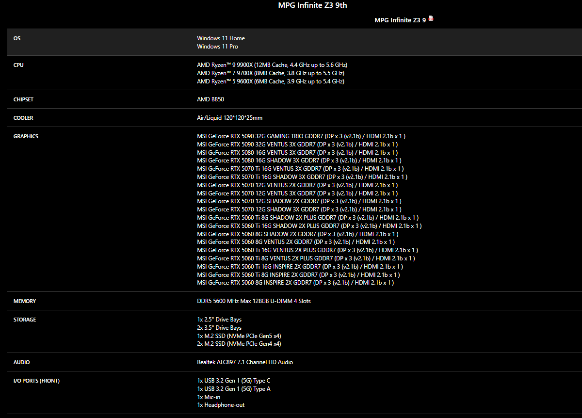 MSI MPG Infinite Z3 9-657SG (3 Years On-Site Pickup WARRANTY BY CORBELL TECHNOLOGIES PTE LTD)