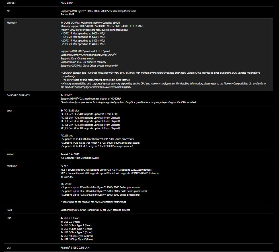 MSI PRO B840-P WIFI MOTHERBOARD (3 YEARS WARRANTY BY CORBELL)