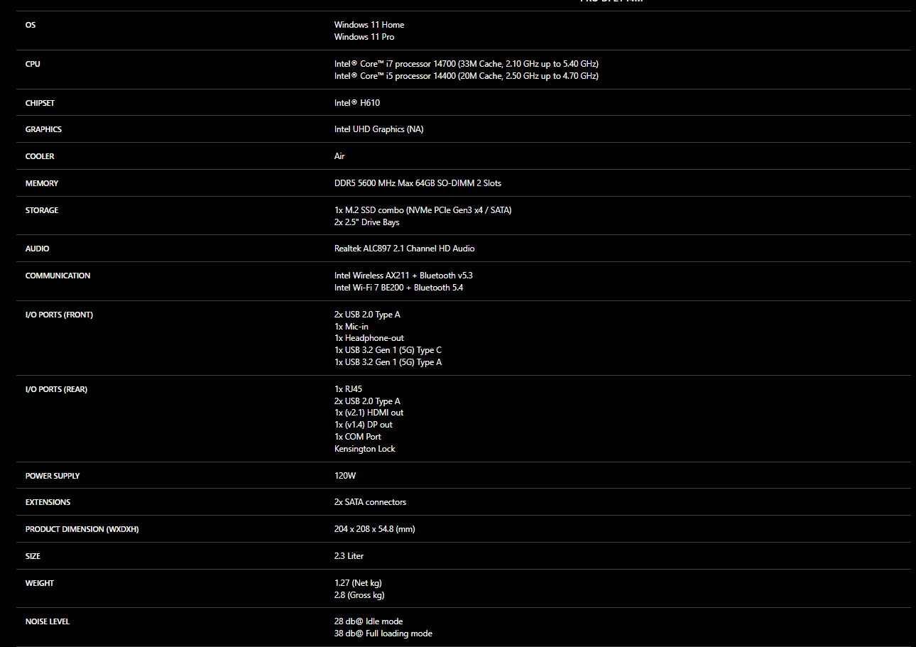 MSI PRO DP21 14M-1058SG INTEL CORE i7 PROCESSOR 14700 (3 YEARS WARRANTY BY CORBELL TECHNOLOGIES)