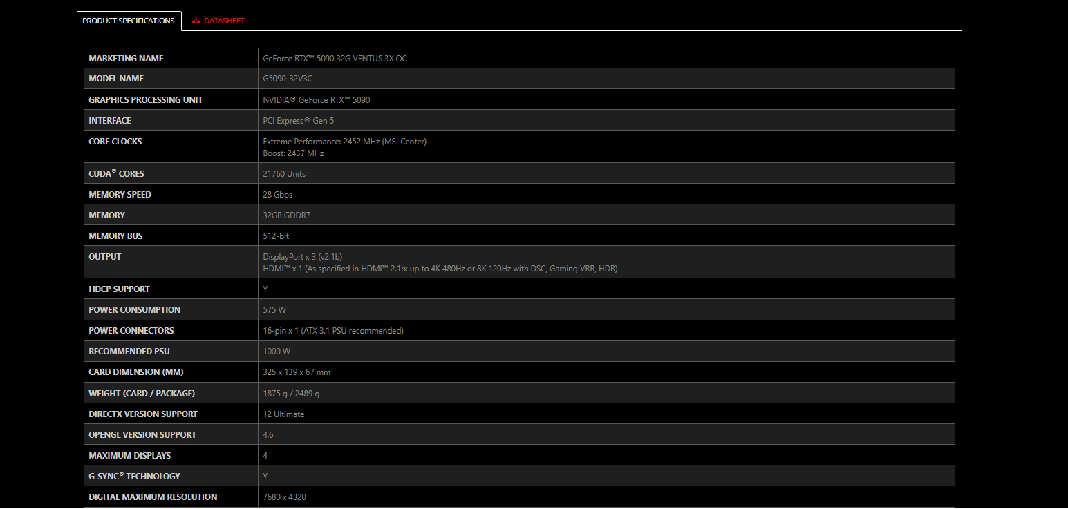 MSI RTX 5090 RTX5090 VENTUS X3 OC 32GB GDDR7 GAMING GRAPHICS CARD (3 YEARS WARRANTY BY CORBELL TECHNOLOGIES PTE LTD )