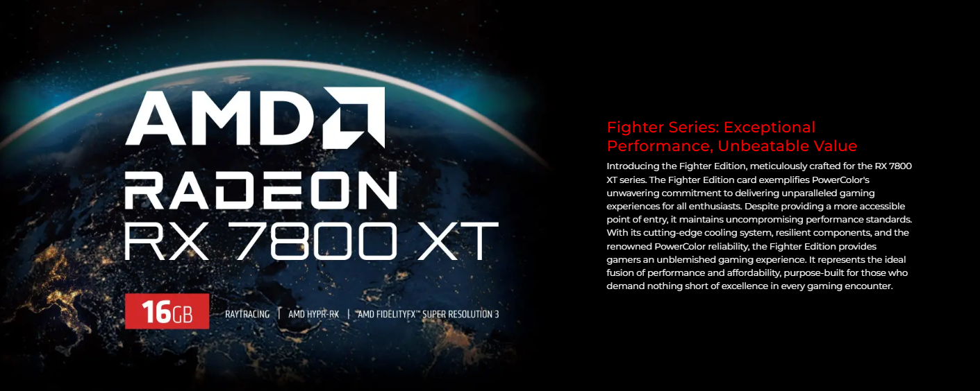 PowerColor Fighter AMD Radeon RX 7800 XT 7800XT 16GB GRAPHICS CARD (3 YEARS WARRANTY BY BAN LEONG TECHNOLOGIES PTE LTD)