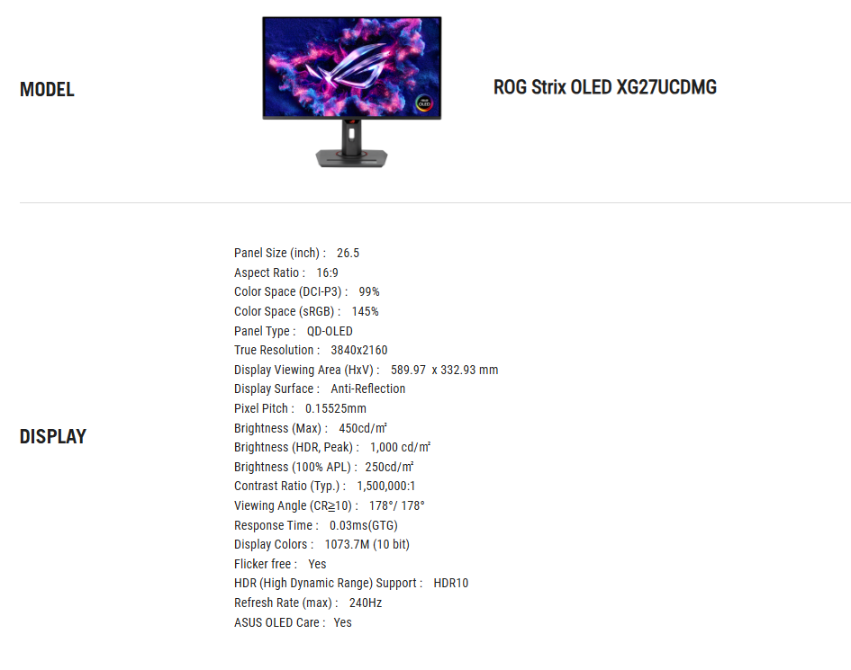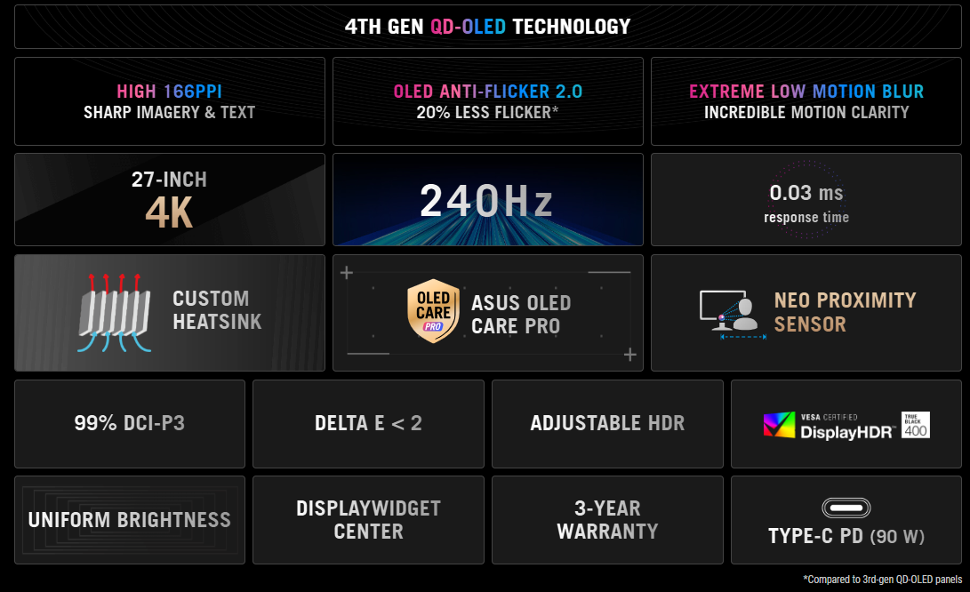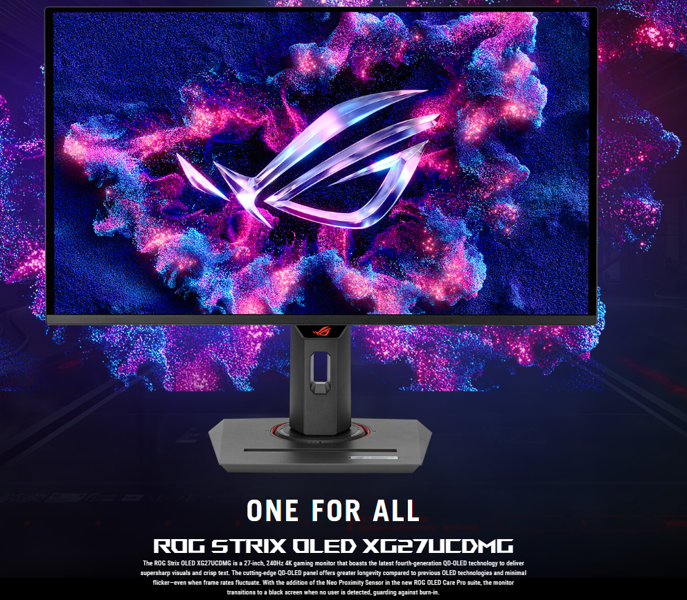 ROG STRIX OLED XG27UCDMG 4K QD-OLED 0.03ms(GTG) GAMING MONITOR (3 YEARS WARRANTY BY ADVERTEK INTERPRISE PTE LTD)