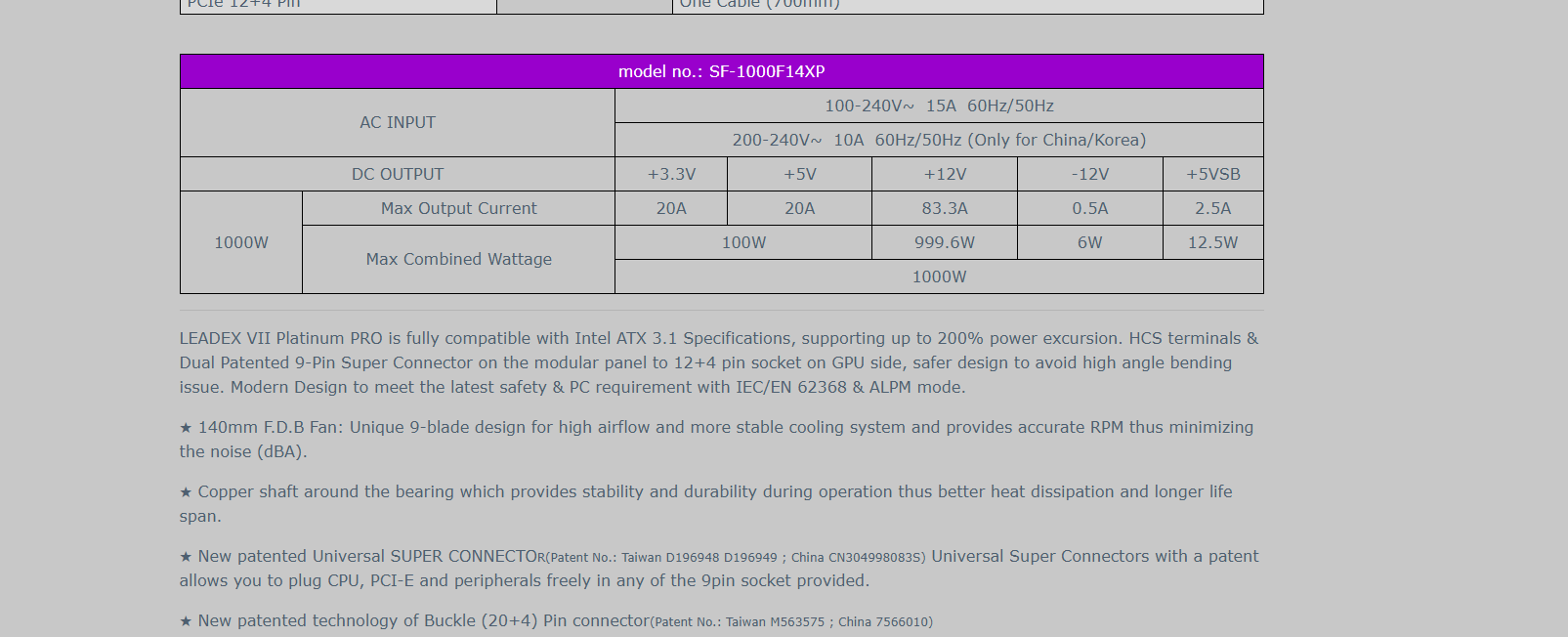 SUPERFLOWER LEADEX VII PLATINUM PRO 850W/1000W ATX 3.1 BLACK POWER SUPPLY (5 YEARS WARRANTY BY TECH DYNAMIC PTE LTD)