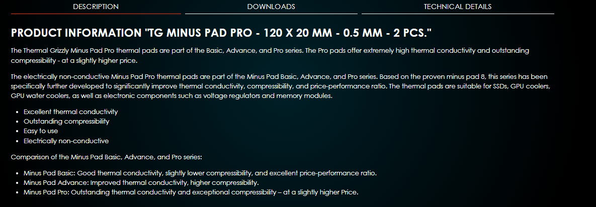 THERMAL GRIZZLY MINUS PAD PRO (7 DAYS WARRANTY BY TECH DYNAMIC PTE LTD)