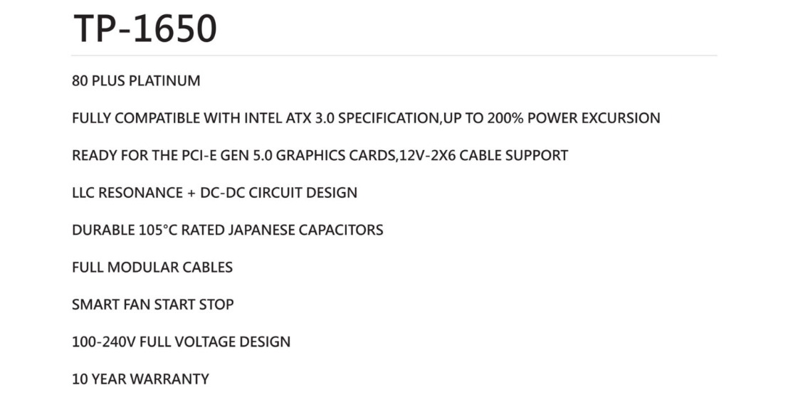 THERMALRIGHT TP 1650W PLATINUM BLACK/WHITE (5 YEARS WARRANTY BY TECH DYNAMIC PTE LTD)