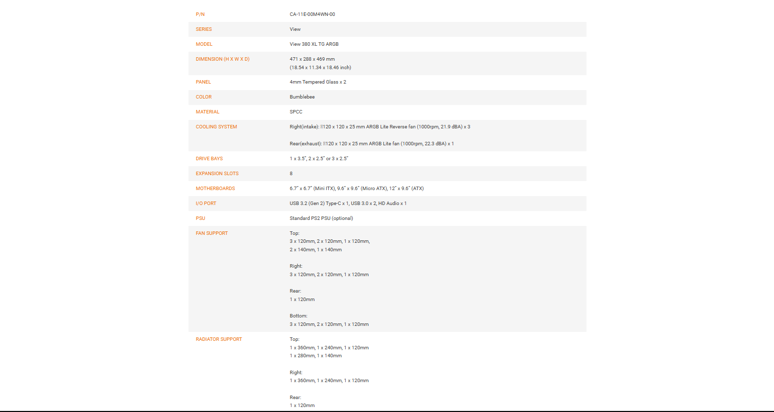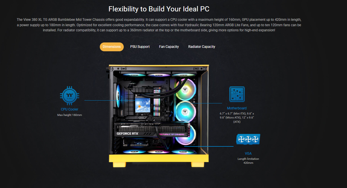 THERMALTAKE VIEW 380 XL TG ARGB MID TOWER CHASSIS BLACK/BUMBLEBEE (3 YEARS WARRANTY BY TECH DYNAMIC PTE LTD)