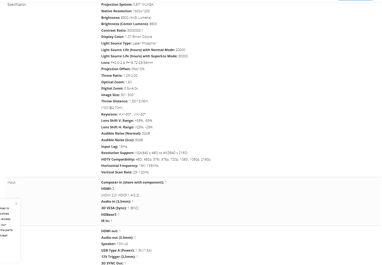 VIEWSONIC LS960WU 8,500 ANSI LUMENS WUXGA LASER PROJECTOR (3 YEARS WARRANTY BY KAIRA TECHNOLOGIES PTE LTD)