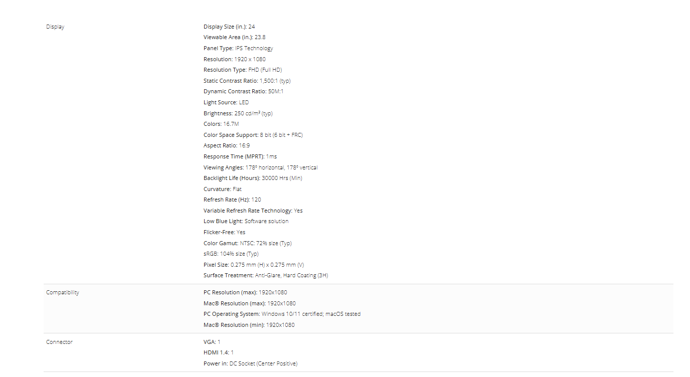 VIEWSONIC VA240A-H 24” FULL HD 120HZ MONITOR WITH 1MS RESPONSE TIME (3 YEARS WARRANTY BY KAIRA TECHNOLOGIES PTE LTD)
